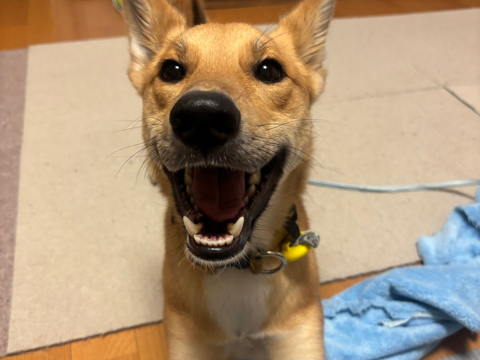 野犬の時に保護された為ものすごくビビり犬🐕ちょっとずつ慣れてきて家ではわんぱくし放題!いつもニコニコ笑ってます♡